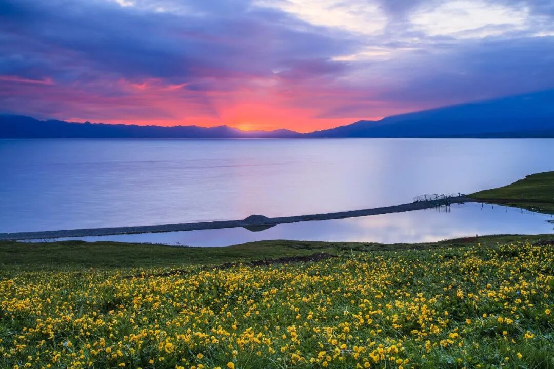 夏天,是赛里木湖最受欢迎的季节,湖边各色野花开放,雪山、草原、湖水构成了绝美的画卷。广阔的草地上,牧草如茵、黄花遍地、牛羊如云、牧歌悠悠、毡房点点、构成一幅充满诗情画意美丽画卷。湖面波光粼粼,在湖边感受夏季的一丝清凉,燥热的心也会随着广阔的湖面平静下来。