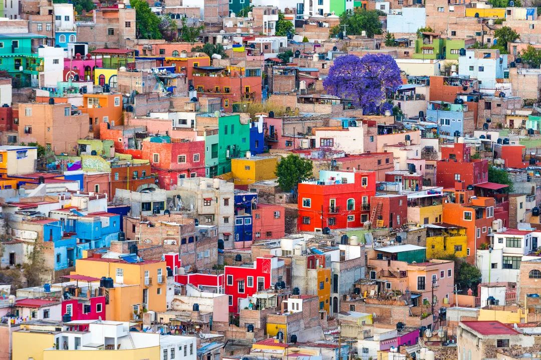 房屋涂上了不那么饱和鲜艳却耐看的多彩颜色