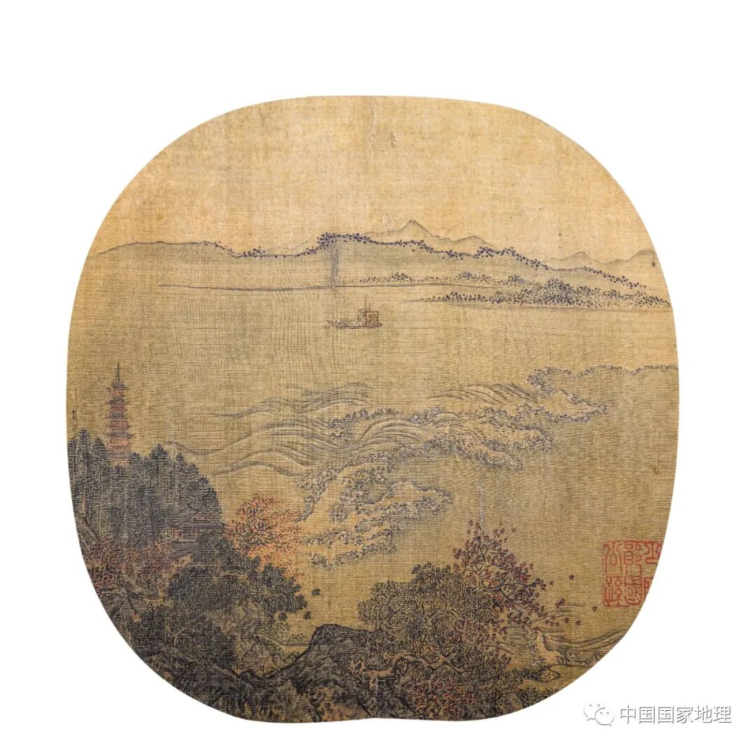 中秋前后,因月球的潮汐作用,杭州湾钱塘江出海口便会出现盛大海潮的景象。因此,宋时兴起了观潮习俗,成为中秋节的一大活动,同时还伴有弄潮儿溯迎而上的惊险表演。图为宋代《钱塘观潮图》扇页,远山淡约空濛,水面之上浪奔潮急。