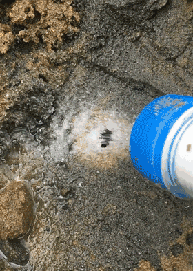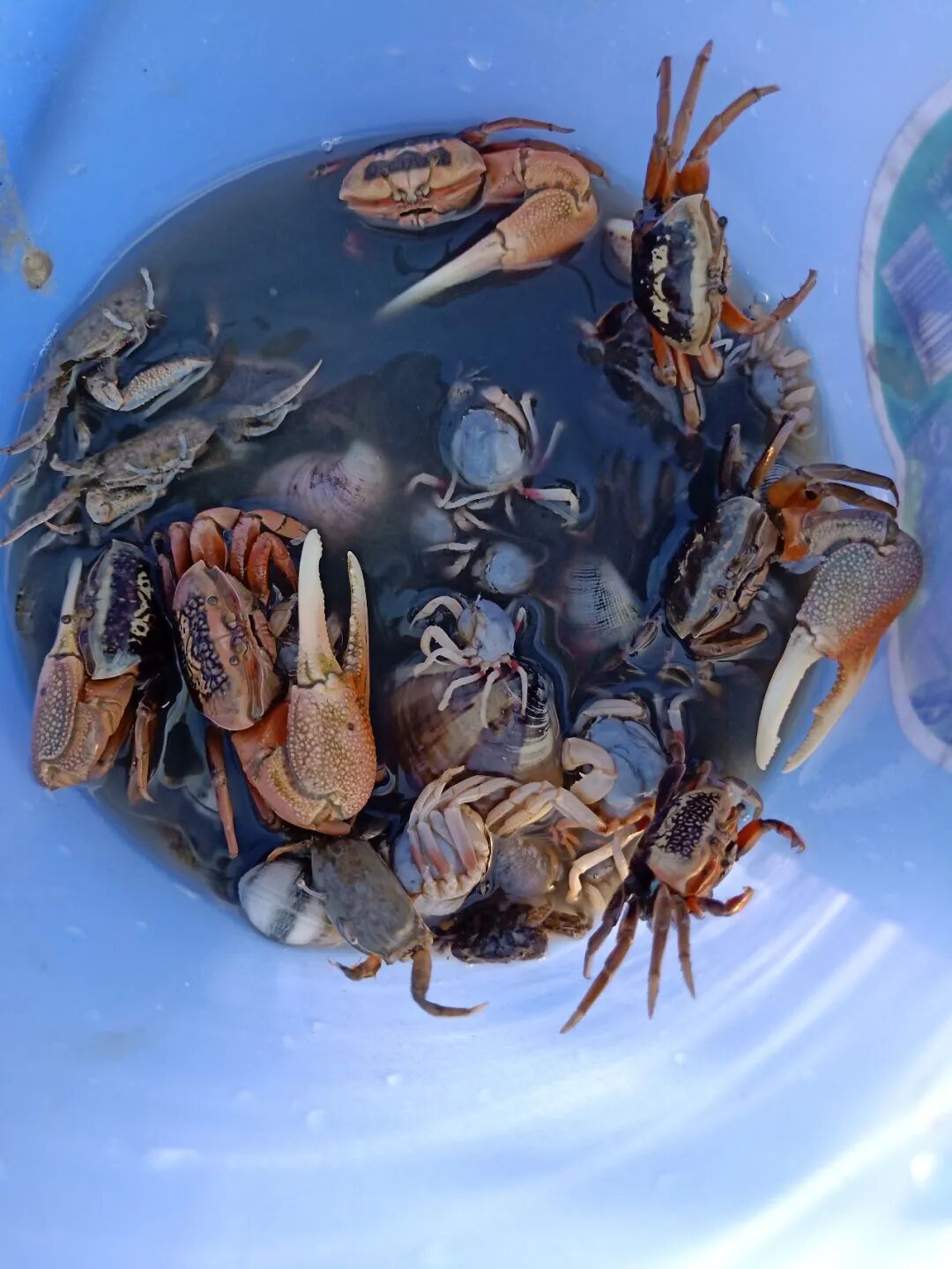 如果在平缓的沙滩上看到小鼓包或手指宽的洞口,别犹豫,开挖!犹豫多一秒,里面的蛤蜊/蛏王/螺/蟹就可能跑掉,这时候可以往洞口加点盐等它们露头。