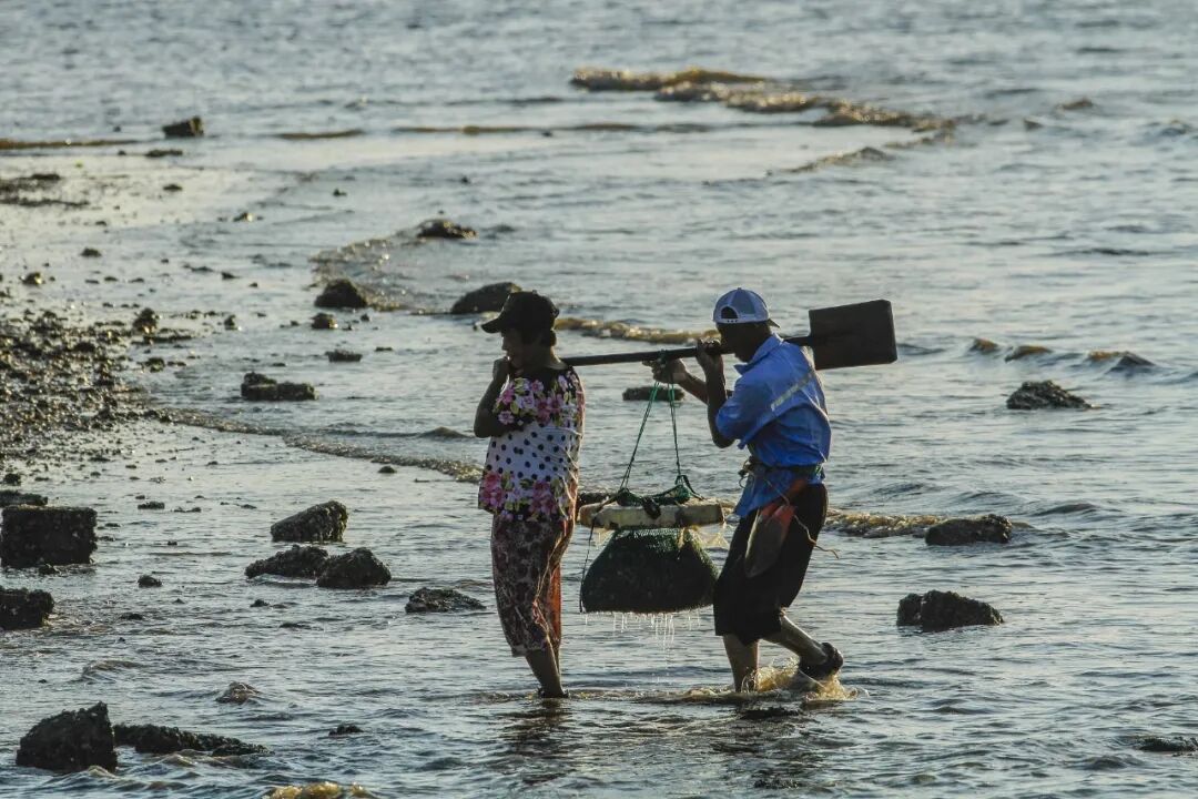 礁石岩缝众多,可供鱼虾藏身;贝类们能用足丝黏附在礁石上,或是钻入泥沙下。这些都是容易有收获的好地方。