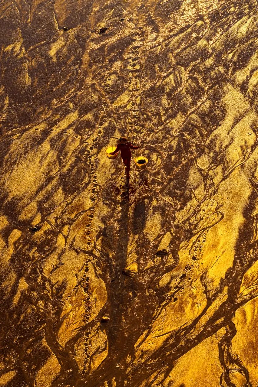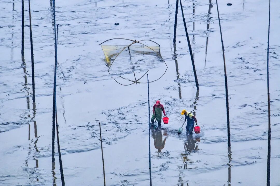 碧海金沙的沙砾质海岸是大多数人提起海边的第一印象,还有一种平缓宽阔、蕴藏物种丰富的粉砂淤泥质海岸,也是赶海的宝藏之地。福建宁德市霞浦县,有着福建省最长的滩涂,面积宽广、泥质细腻,阳光下灿金与灰黑的泥带交错,远看像斑斓的虎皮。