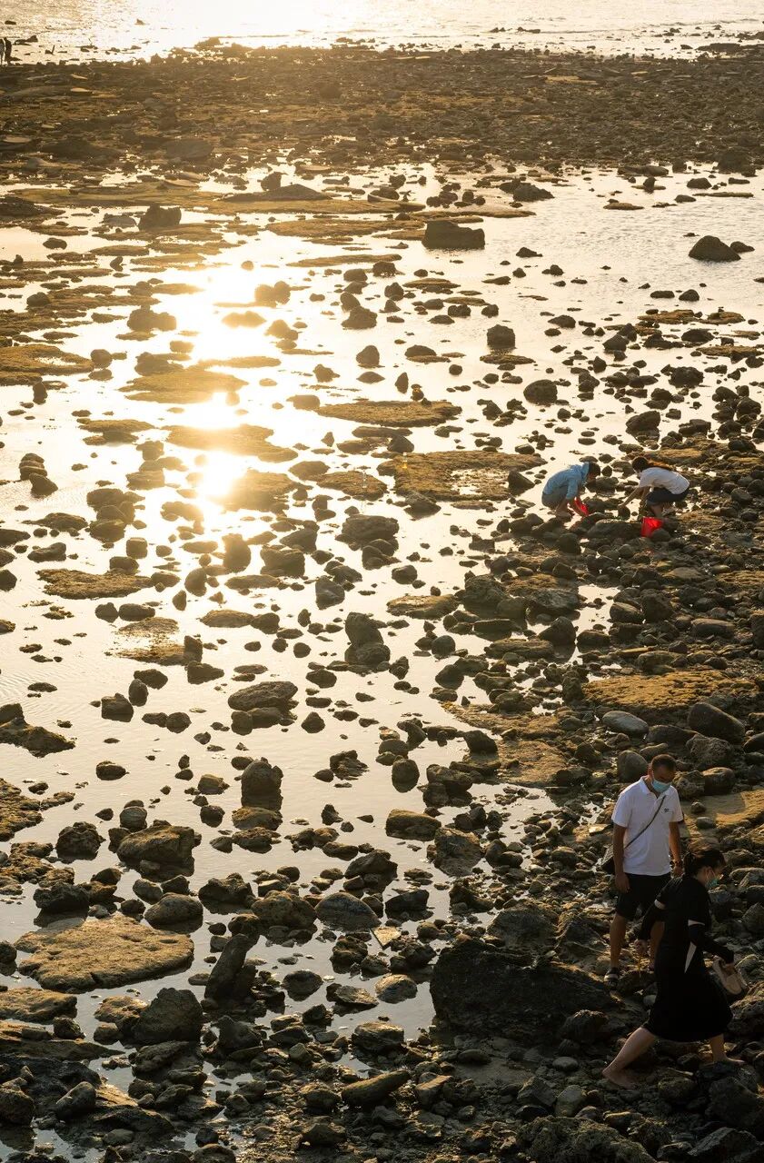 另外,潮水每天涨退的时间、幅度都不同,会按天文周期变化。如果在涨潮期间赶海,就只能挖挖沙了,可能连礁石都看不到。
