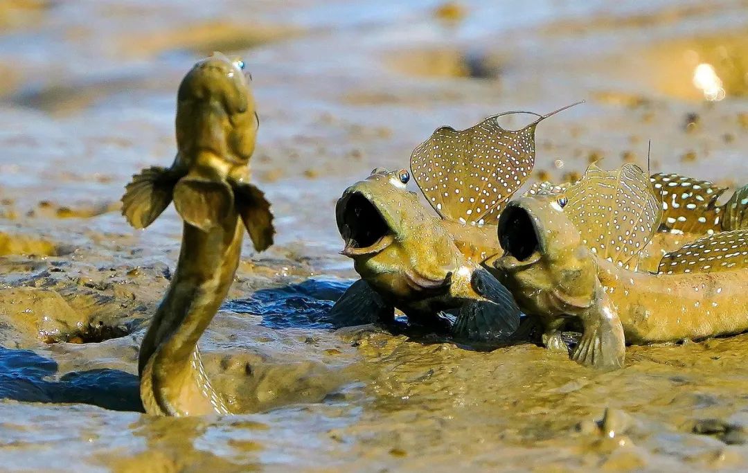 雄性弹涂鱼会弹跳到空中,挥动自己的鱼鳍吸引异性