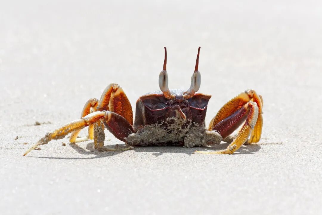 角眼沙蟹,因为眼睛上方“长角”而得名,