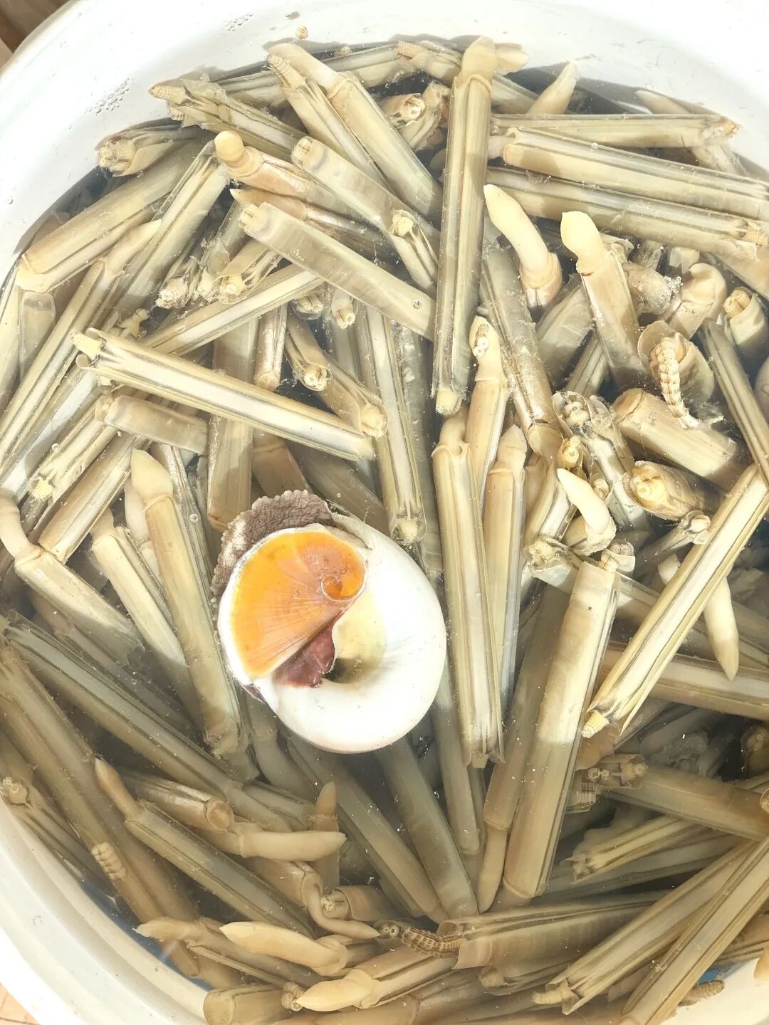 还有一种赶海视频里的常客,蛏子,想必大家都不陌生。它的贝壳近似长方形,壳质薄脆能轻易掰断,两壳抱合时就像一节竹管,里头塞着肥厚的贝肉,伸出长长的“鼻子”。