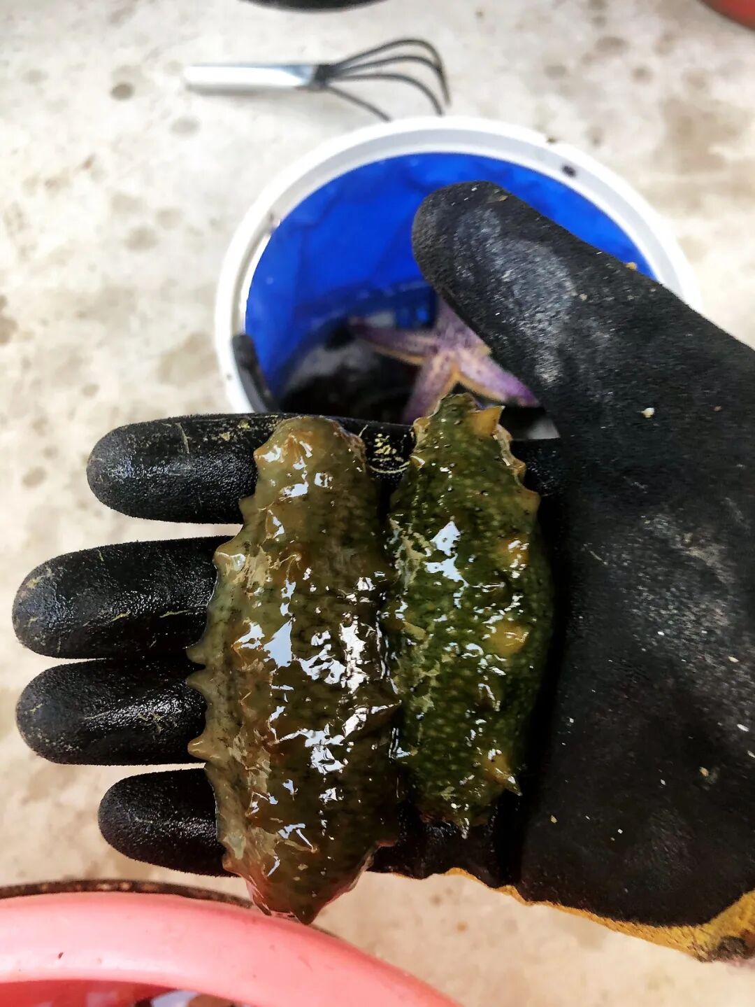有的海螺藏在海水没退完的石头缝里,这种就要靠摸了,但是一定要一定要带手套,不然有可能会被缝隙里的不速之客比如螃蟹、海胆之类的弄伤。