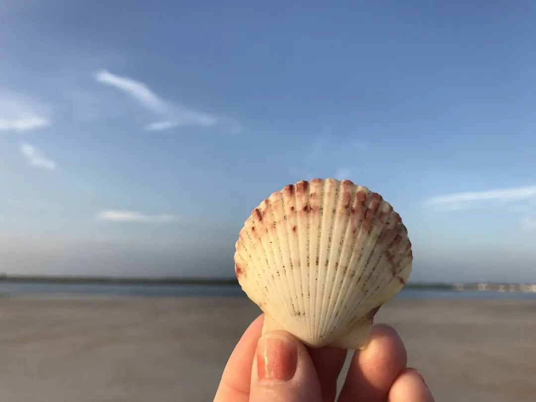 在海边捡到扇贝贝壳比捡到扇贝还是容易多了