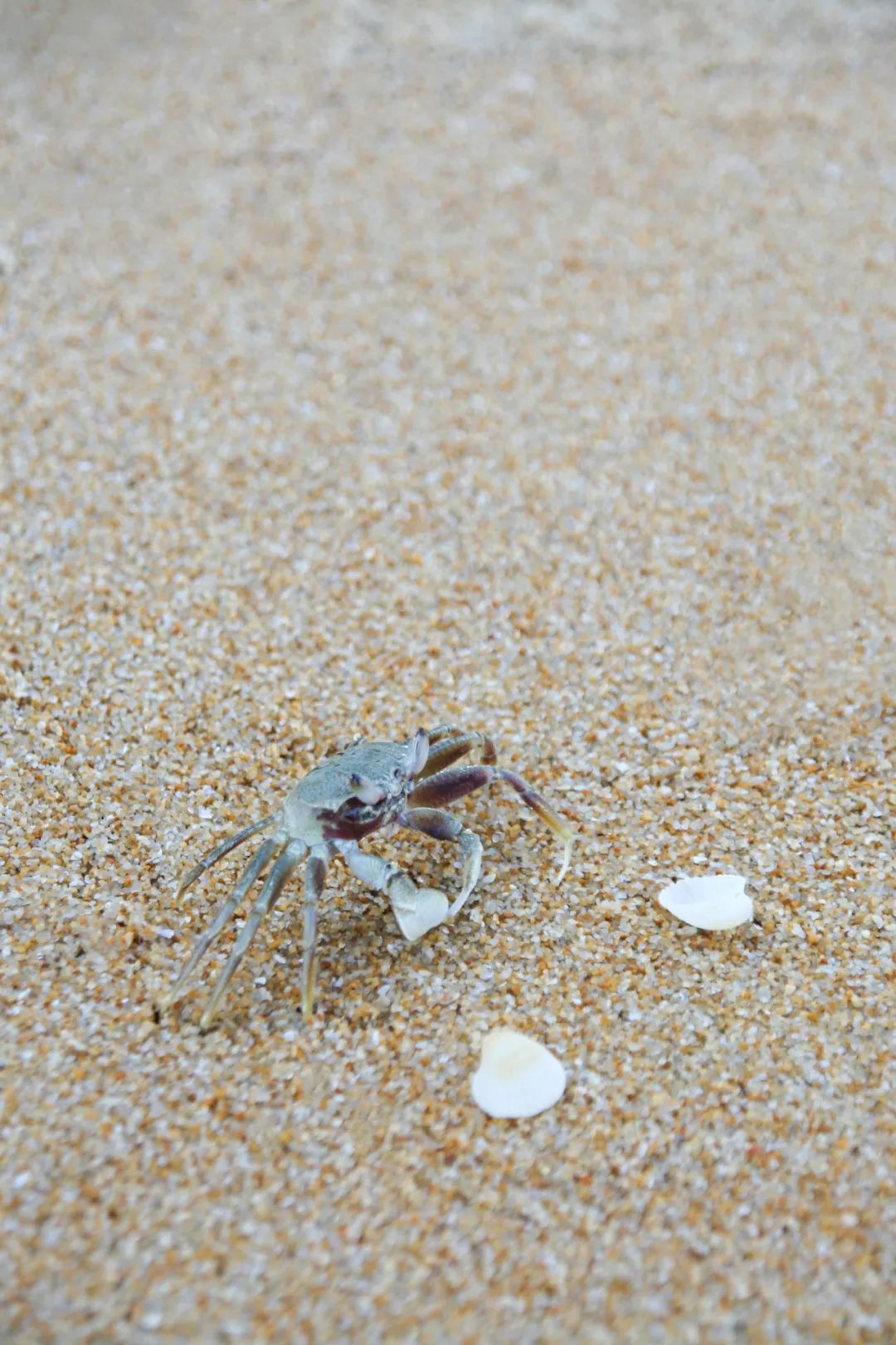 还有一些居住在潮间带泥沙中的蟹,动作轻盈,行动迅速,它们偶尔在海水里游泳,但不喜欢长时间待在水里。只能靠海浪涌来的时候压低身体,在沙上刨坑让自己“隐身”。