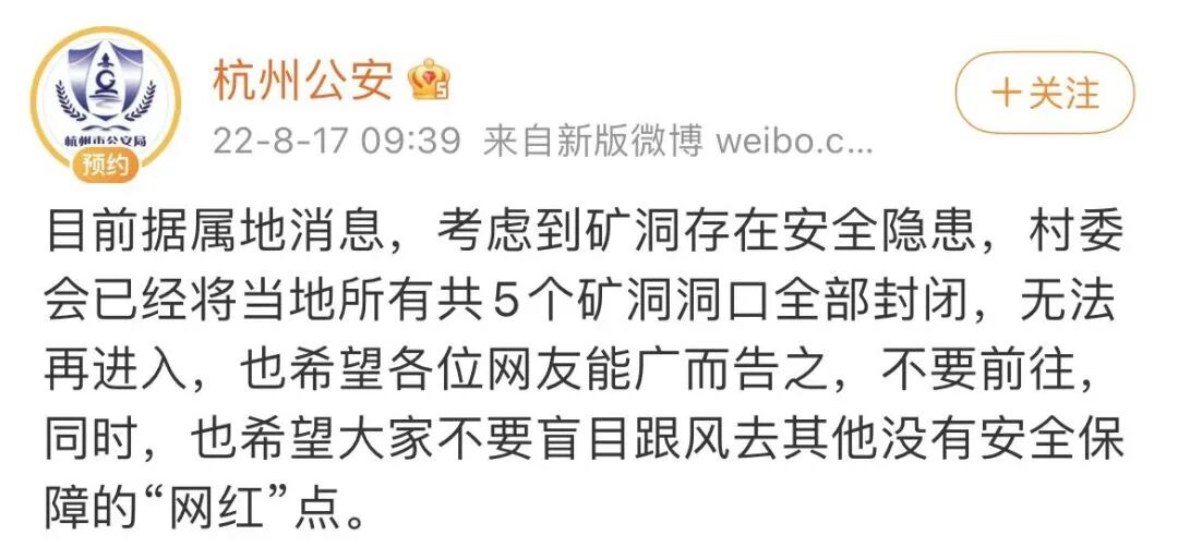 杭州公安建议不要跟风探洞