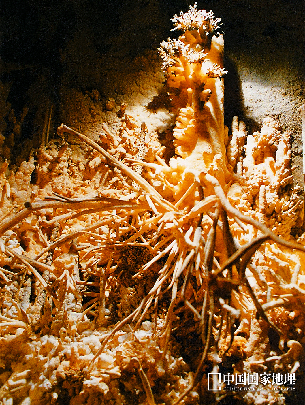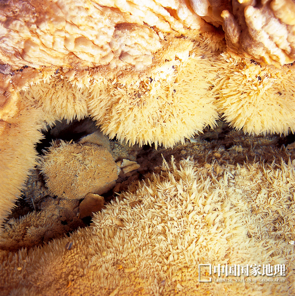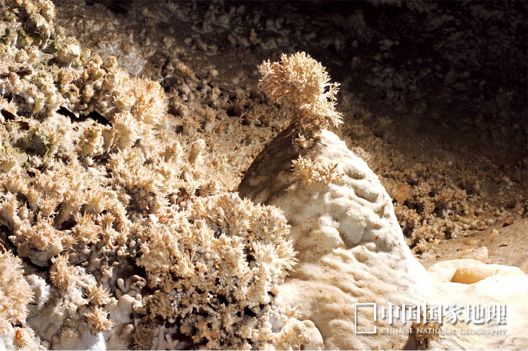 芙蓉洞中的鹿角状卷曲石,造型非常稀有