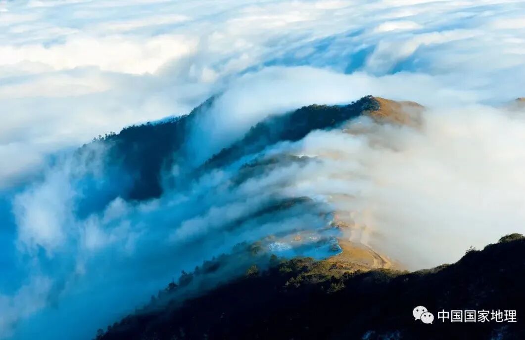 华西雨屏带地处四川盆地与青藏高原东缘的交会地带,由于地势陡升,冷热气流往往形成上百公里的锋面,导致雨雾多的现象。图为雅安市宝兴县达瓦更扎下午的云海,冷空气遇到暖湿气流往往会形成积雨云。摄影 / 高华康
