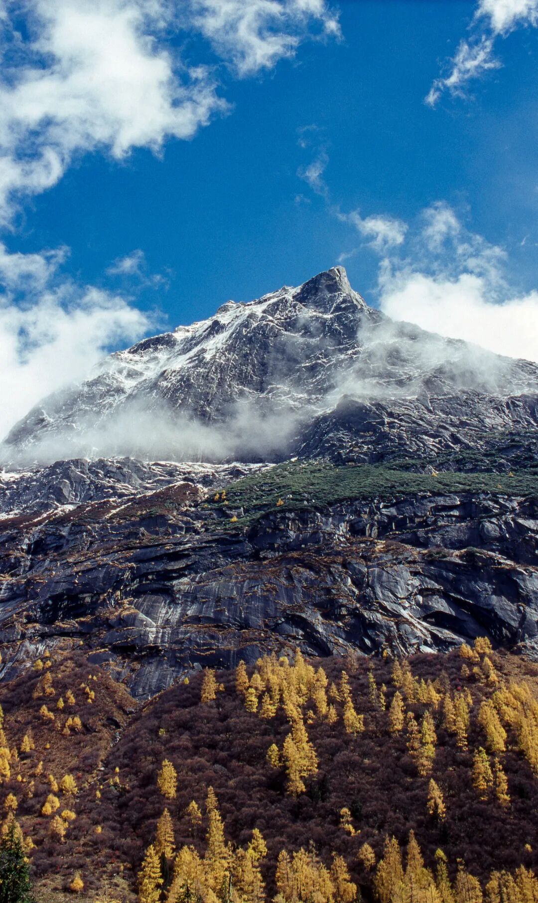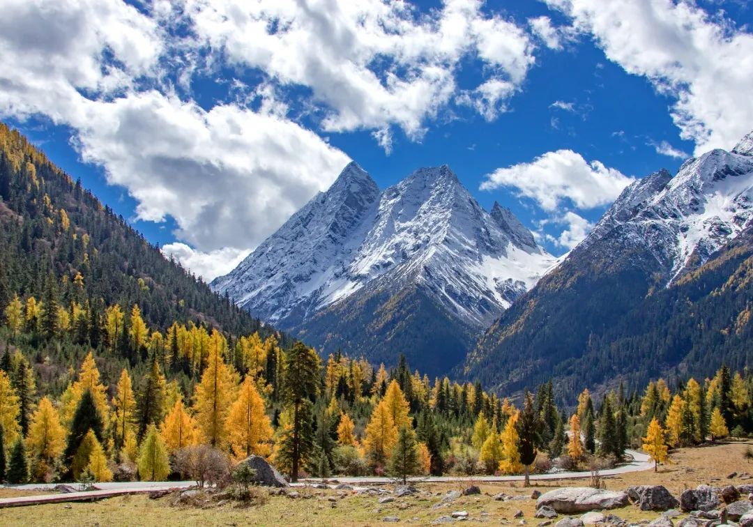 如果有一本童话书描述秋天,那本书一定是中国西部的雪山。雪山其实不是完全都由雪覆盖着的,西部雪山是有雪线的,专业解释就是永久性积雪的下限。通俗点理解,雪线就像是一条生命线,上面是肃穆的冰雪,而下面便是生机盎然的空间。