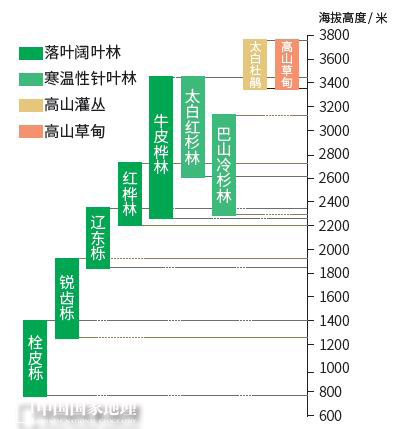 秦岭太白山北坡山地植被垂直分布图