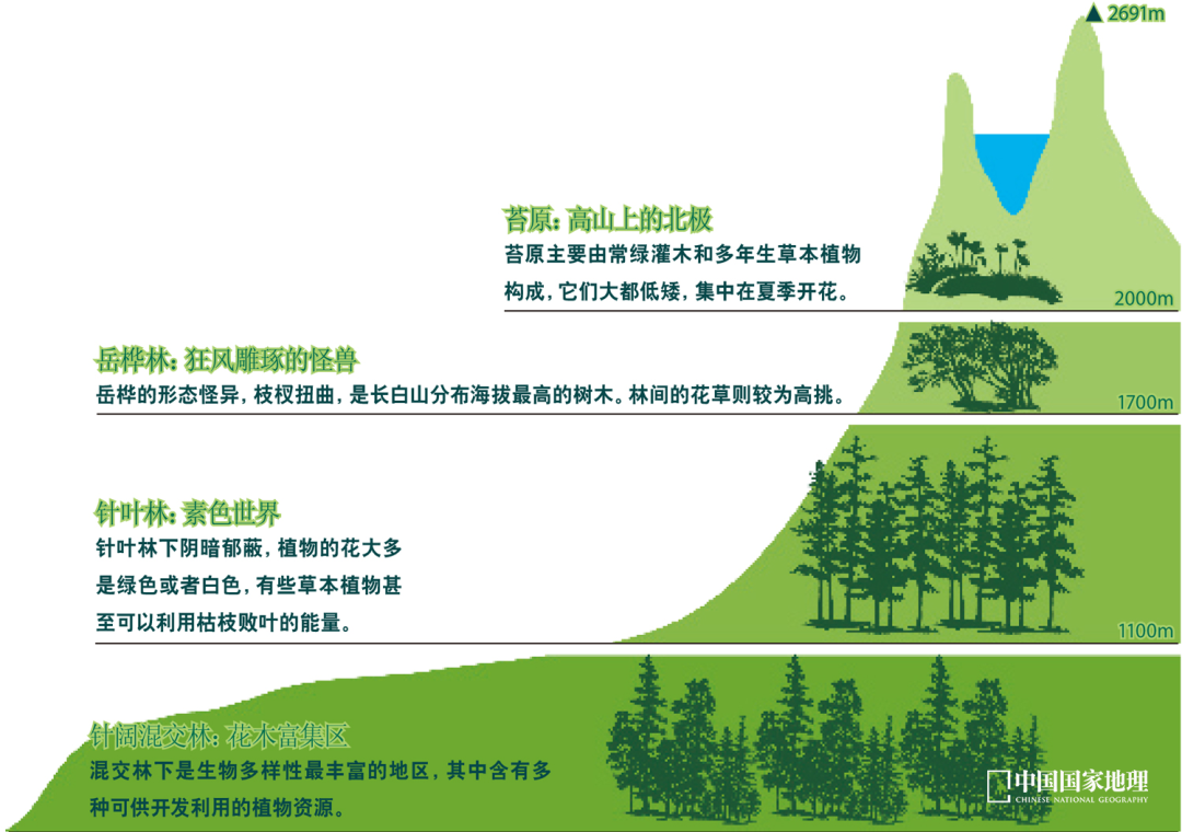 长白山不同海拔的森林植被带
