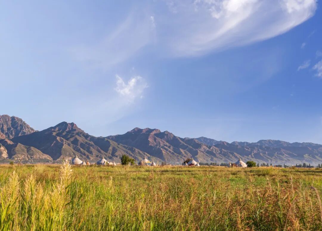 继续行驶在内蒙古高原之上,行进约1800公里后,来到阴山山脉边,这里将河套平原与内蒙古高原隔开,也隔开了游牧文明和农耕文明。敕勒川位于阴山脚下,一大片壮美辽阔的平原。选自《乐府诗集》的《敕勒歌》:“天苍苍,野茫茫,风吹草低见牛羊”,说的正是这里草原壮丽富饶的风光。