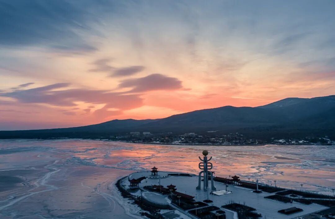 沿界河一路向北,来到黑龙江抚远市,乌苏里江和黑龙江在此交汇。在其西南侧有一块河流冲积而成的三角洲——黑瞎子岛,是中国疆土的最东端,这里是一年当中大部分时间在中国最早见到太阳的地方。