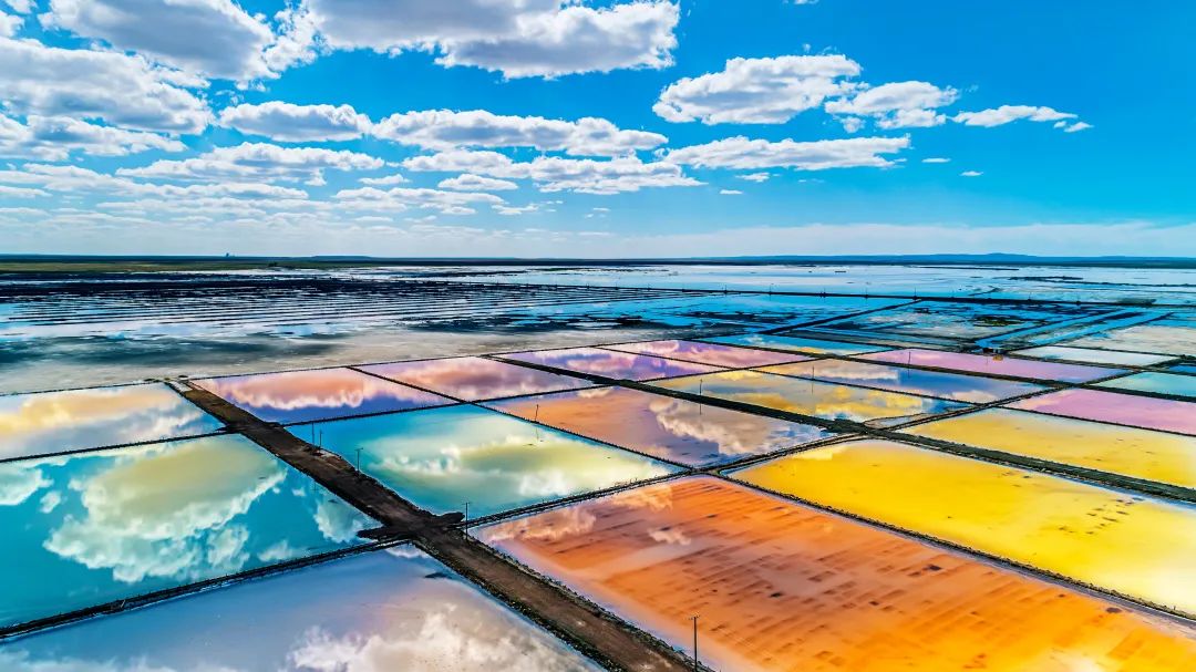 额吉淖尔位于东乌珠穆沁旗西部的古湖盆内,这里有大片沼泽地和盐湖、碱湖,其中以额吉淖尔面积最大。东乌珠穆沁旗草原曾经是无垠的大海,在经历了亿万年沧海桑田的变化之后,大海消失,留下了盛产一种白色礼物的湖泊,就是现在的额吉淖尔盐湖。每当盛夏,湖边一块块方格盐场呈现五颜六色的景观,种种颜色如花般纷纷绽放。额吉淖尔盐湖所产的大青盐,品质尤为出众,名闻四方。
