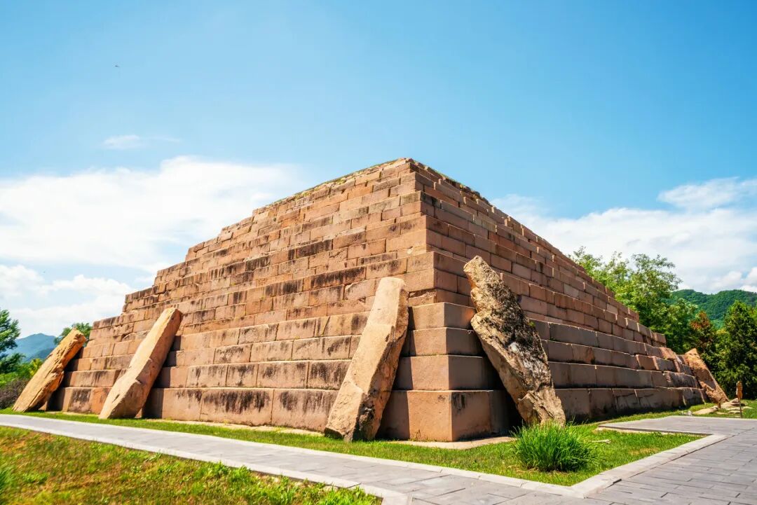 这里还有被誉为“东方金字塔”的高句丽长寿王陵,巨大的条石层层垒砌,逐级内敛,形成了一座截尖方锥体的方坛阶梯石室墓。