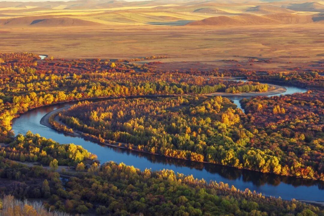 G331国道南下穿越大兴安岭,来到额尔古纳湿地。作为“亚洲第一湿地”,这里的秋色媲美喀纳斯,不输九寨沟,弯曲清澈的水在彩林中穿越环绕,美不胜收。