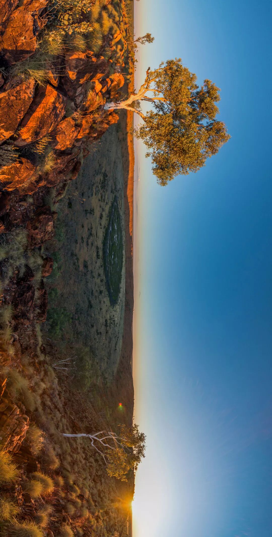 澳大利亚沃尔夫溪陨石坑,有着标准的的同心圆构造,其中心地带留存的矿物可以储存水份,得以供养着一片植物。