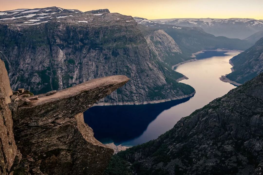 挪威松恩峡湾,长度超过200公里,最大水深1308米,被称为“峡湾之王”。