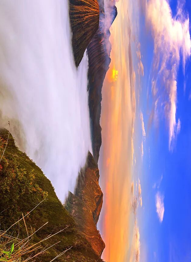 美国夏威夷,几劳亚活火山的岩浆倾入大海,迸发出漫天的蒸气。