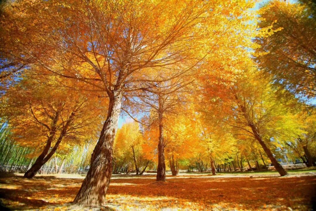 深松路上,有着金灿灿的银杏林