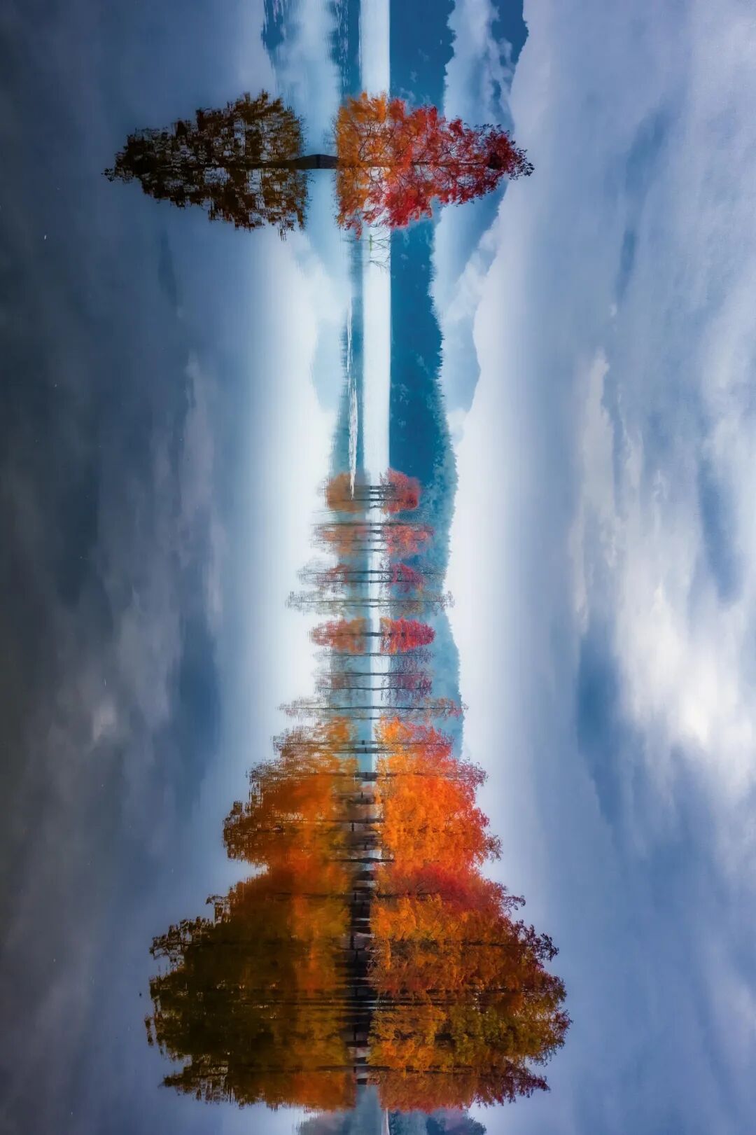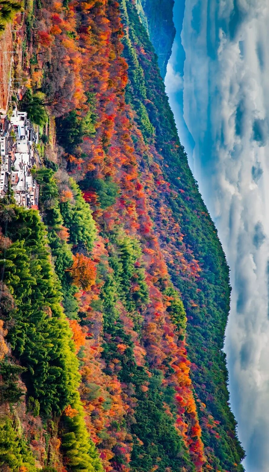 一夜霜风,悠悠碧空,层林尽染