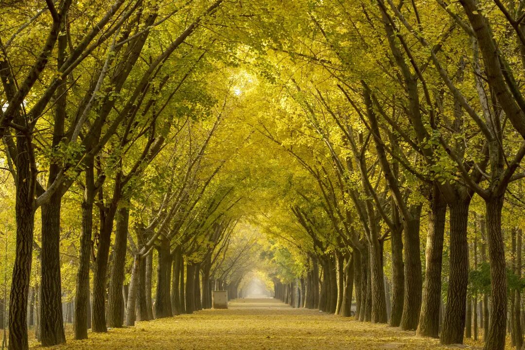 每年11月初是银杏大道的最佳观赏期