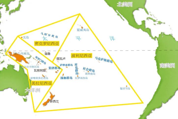 密克罗尼西亚、美拉尼西亚、波利尼西亚