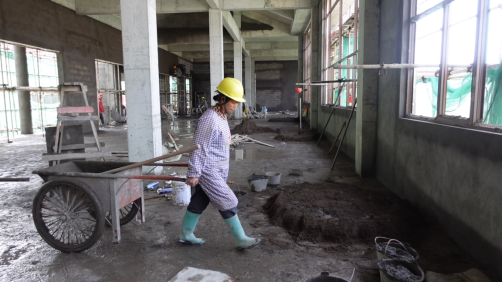 其实妻子对水泥过敏,一碰到就浑身发痒,我心疼她,不让她来工地。可是她说不要紧,愿意帮着我一起干活。