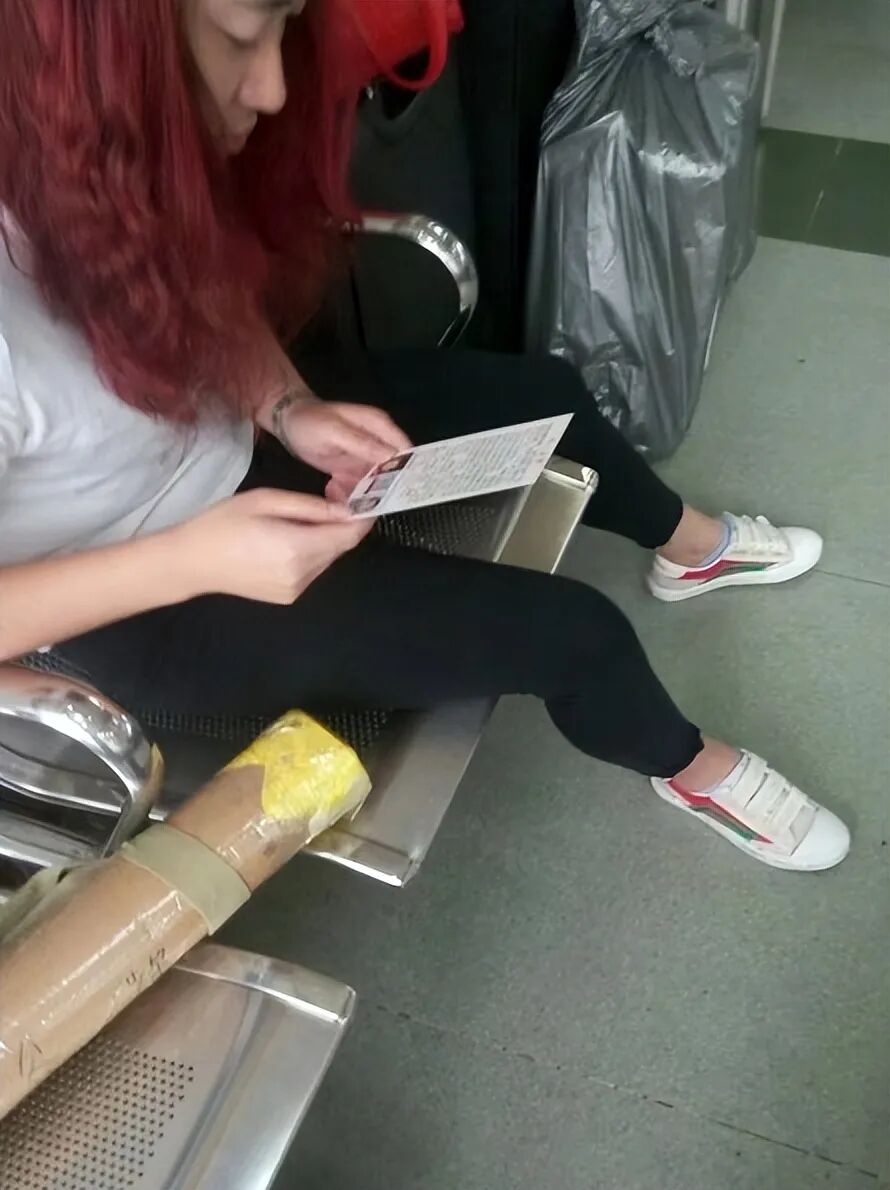 高个子女人看到父亲回来,嘴里一边说买得还挺快的,一边从父亲手里拿过火车票看。