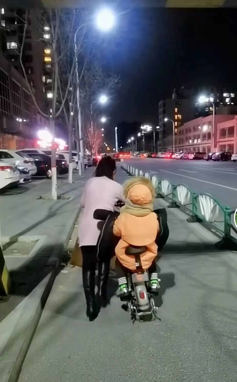 有一次夜里,女儿发高烧,正赶上我出差不在家。她妻子就骑着电动车带着两个孩子往医院跑,可中途车没电了,她只能一路推着。