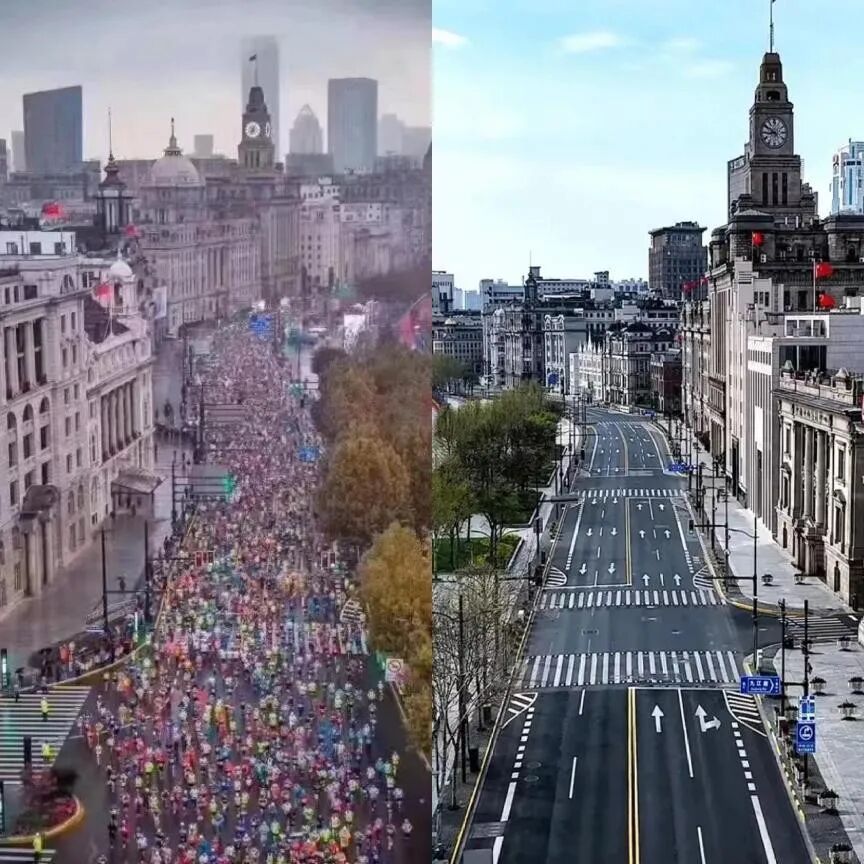 上海半马的起跑点就在东方明珠塔下,全马是在外滩,都是最繁华的所在。