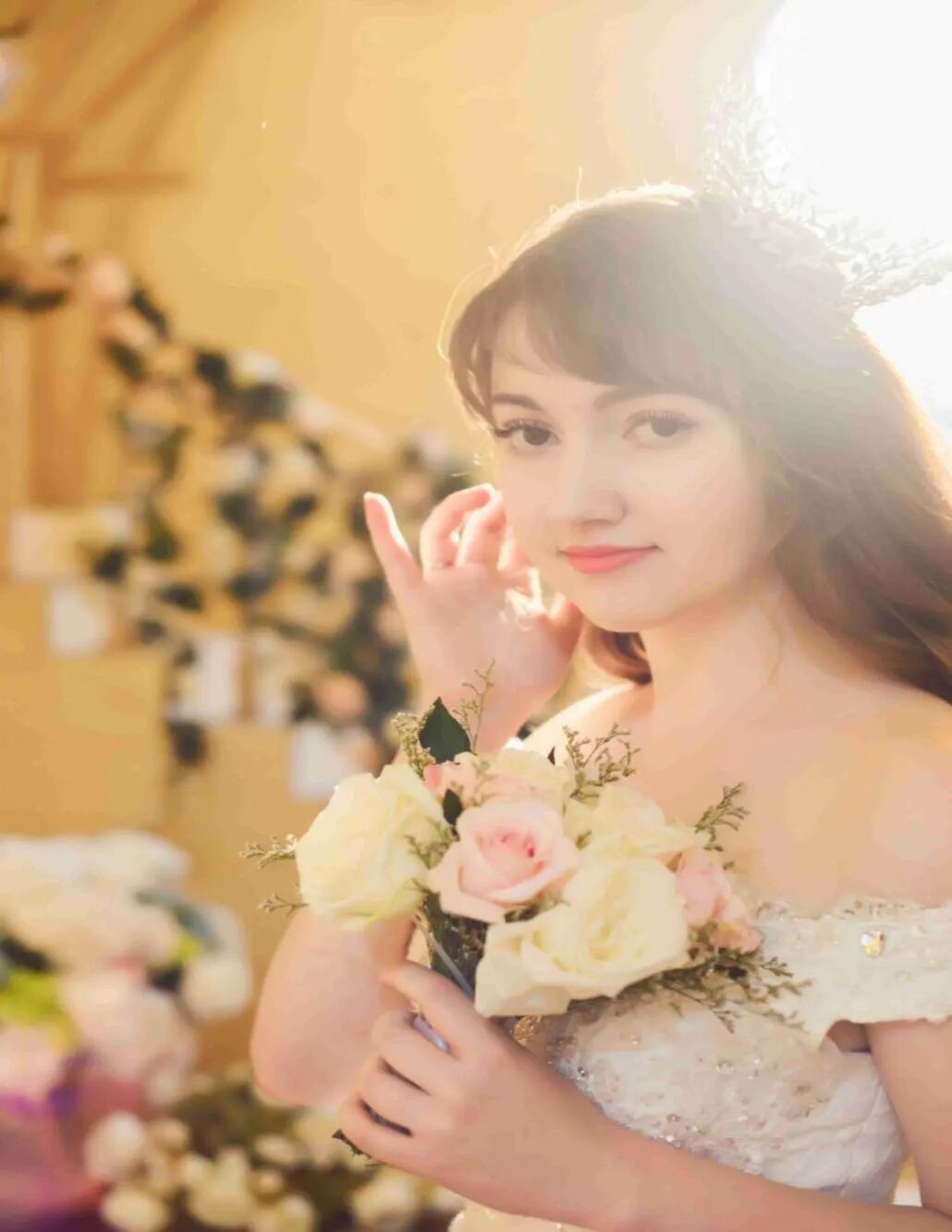 当我走近的时候,他站那儿看着我笑,说我好漂亮。听了他的话,我害羞的低下了头。