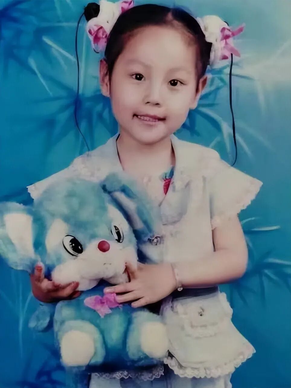 因为当时女儿是在家中睡觉,所以只穿着白色蓝边背心儿和白底蓝树叶短裤。