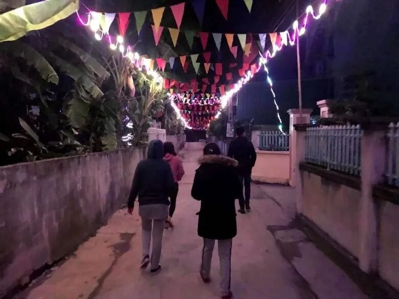 越南农村过年的时候年味很浓,街上到处都是彩旗和花灯,送灶王,迎灶王,祭祖守岁拜年一样不少。