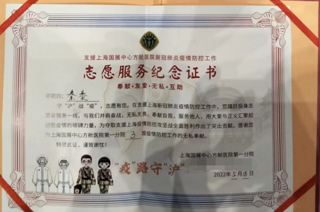 不管是医护人员,志愿者小伙伴还是病人,他们都称赞我、认可我。让我明白了,自己做的事,对别人来说,有着重要意义。