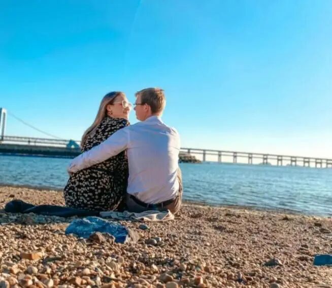 2017年,我们一起到瑞典旅行。当时在波罗的海的一座灯塔下,他单膝跪地,从怀中拿出戒指,向我求婚。一切那么自然,我们彼此相拥。
