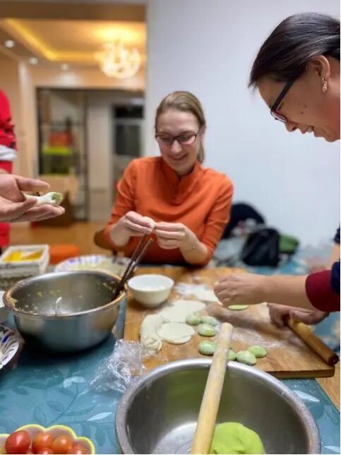 还好有中国朋友陪我们一起过节,还教我们怎么包饺子。我们才知道中国的很多节日都会吃饺子。