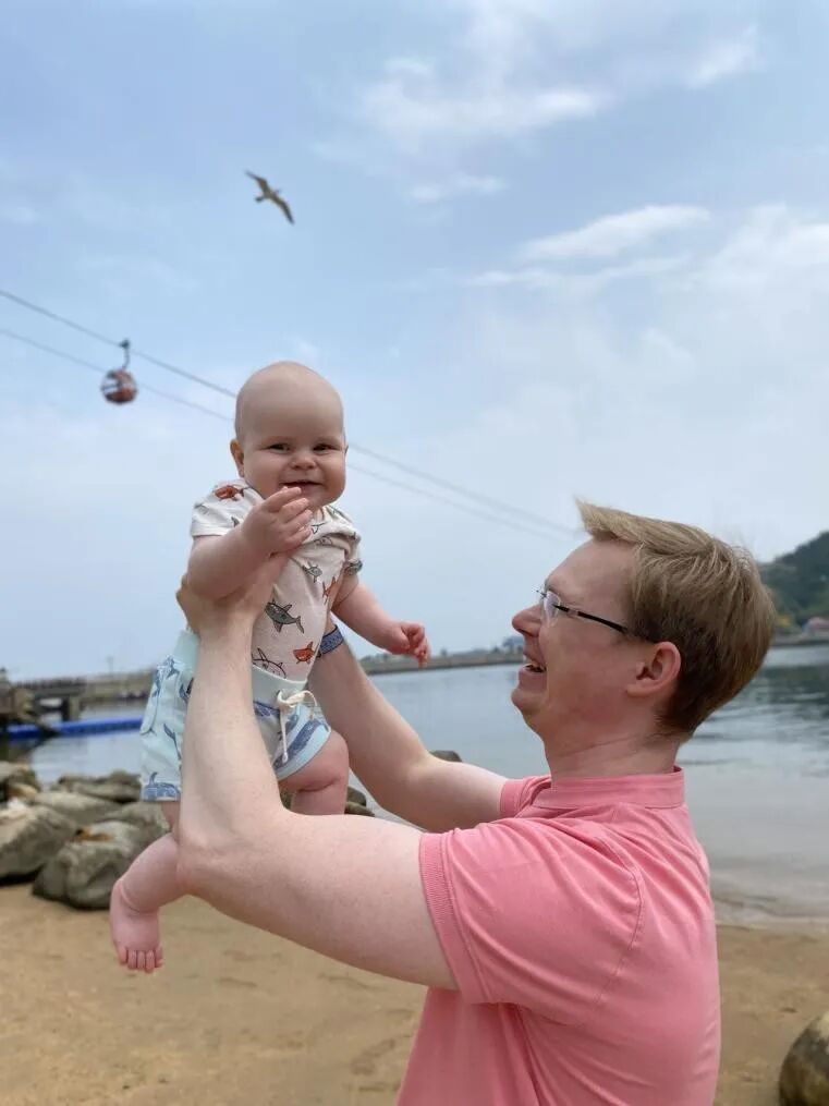 我们做得还不错,瓦西里很积极地承担起爸爸的角色。他会给米龙喂奶、换尿片,还会带他去游泳,用中国话说,就是标准的“奶爸”。