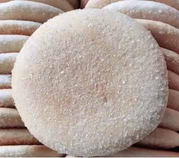 到现在我都还记得那个白糖饼的样子:面粉做的小圆饼,面上沾满了白糖,颜色是米黄色的,直径大概有十公分这么大。