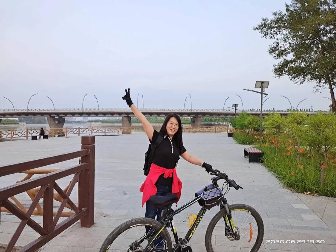 现在我的生活就是每天骑车至少10公里,空闲之余还会做瑜伽,后来还和车友们参加跑步,参加过几次马拉松。喜欢到处旅游,最远去过西藏。