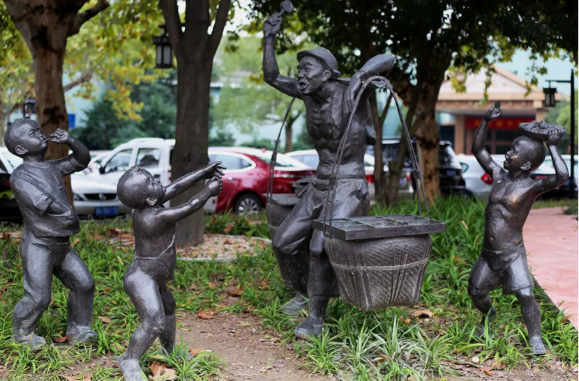 他们活跃在廿三里的大街小巷,老镇上有个不大的“拨浪鼓广场”里一组“鸡毛换糖”的雕塑正是讲述了这段历史。