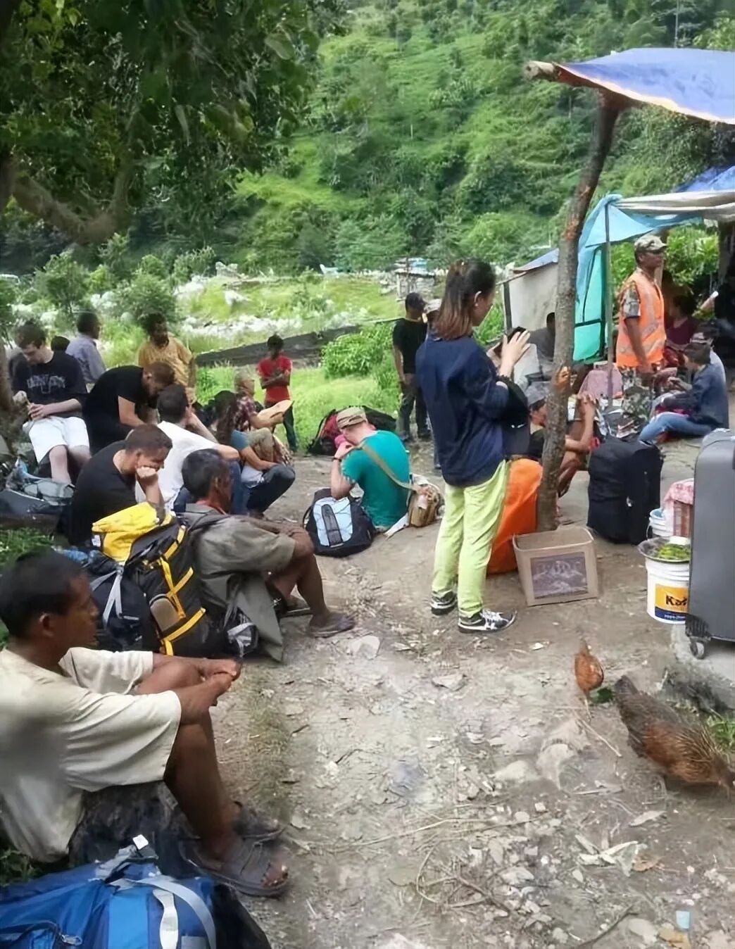 从樟木口岸刚出境,就遇上了塌方,导致无法通车。最后只得在尼泊尔境内,步行了三个多小时,才到达了目的地。