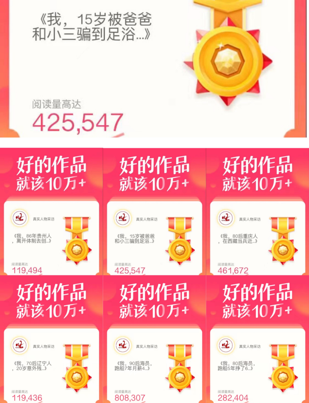 他们学习写作的目的有相同也有不同,但他们都在“真采”这赚到了稿费,稿费早已超出了当初交的学费,还积累了自己10W+、100W+的爆文作品。