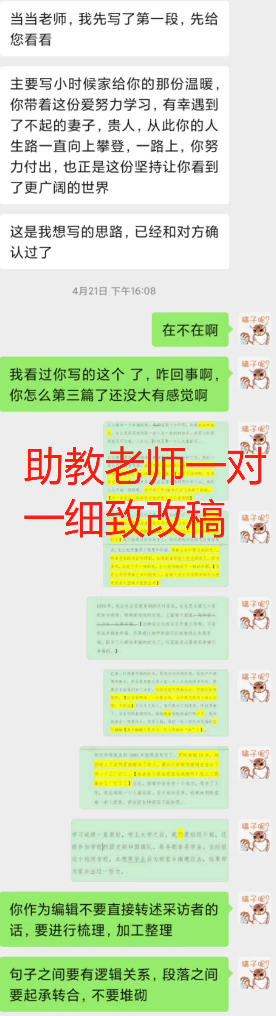 我们没有高阶课,没有额外的付费项目,从课程到受访者再到助教改稿都由我们提供,签约后依旧会提供受访者和助教改稿服务。