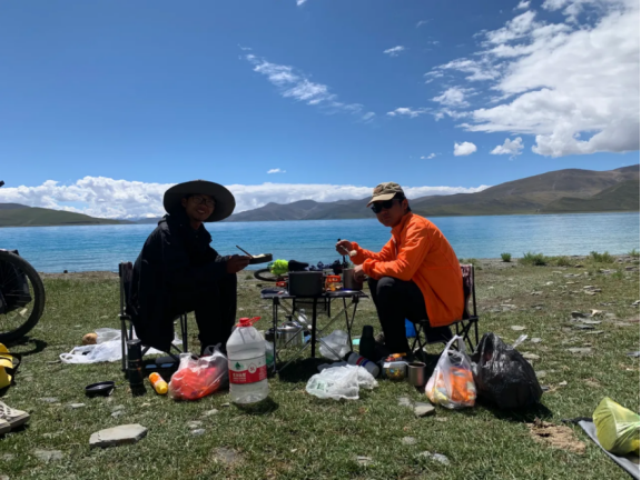 每天随心而骑,不想骑就停下来休息,看看蓝天白云,赏赏高山流水,再和当地人聊聊天,然后拍拍照、剪辑下视频。