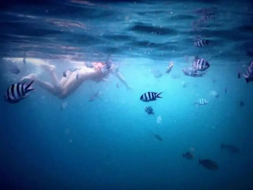 有一次在泰国帕岸岛,我和一群外国游客包了一艘泰国渔船,一起到附近海域浮潜(Tips:水肺深潜和普通浮潜是不一样的)。